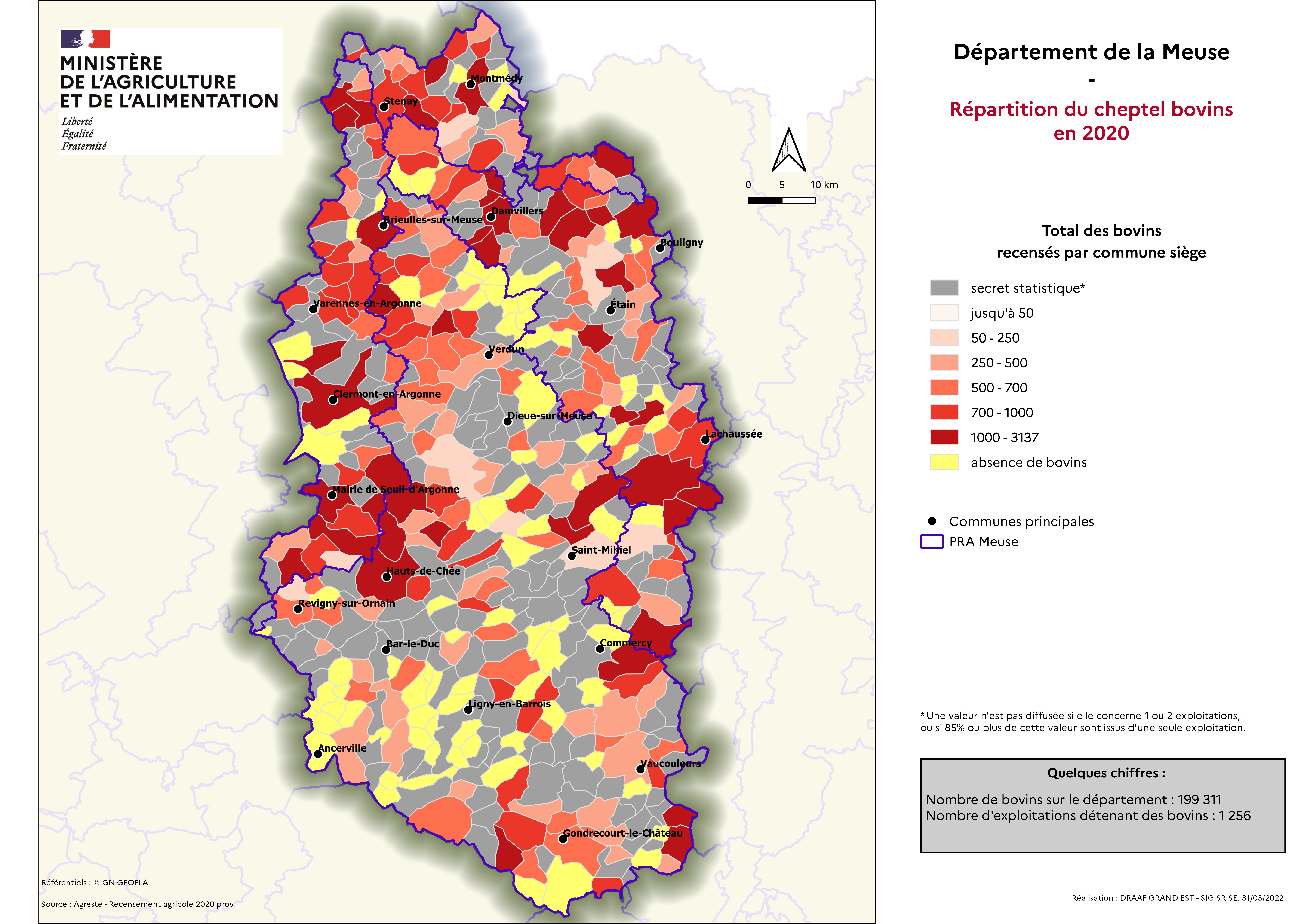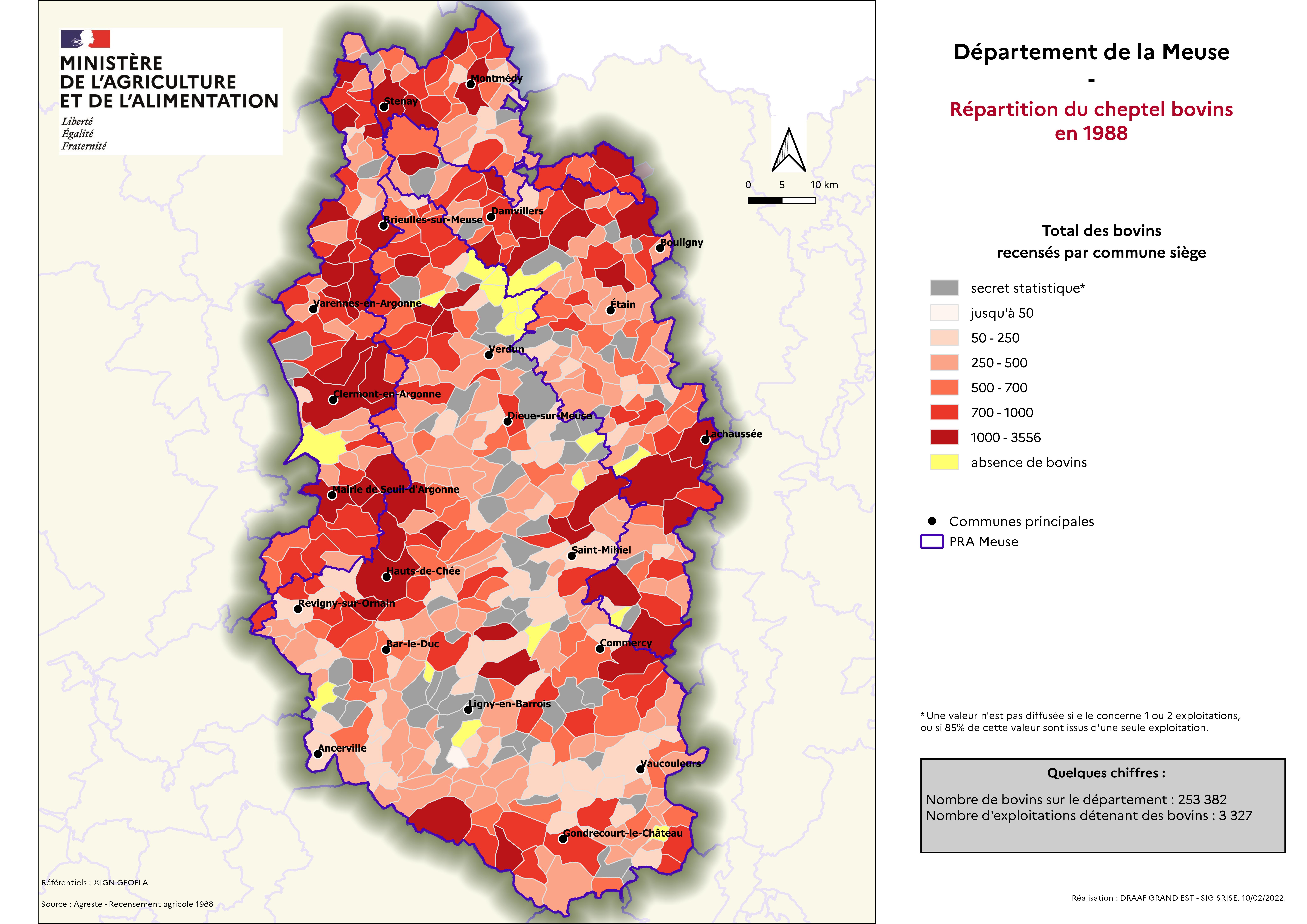 Répartition du cheptel bovins (1988, 2000, 2010, 2020)