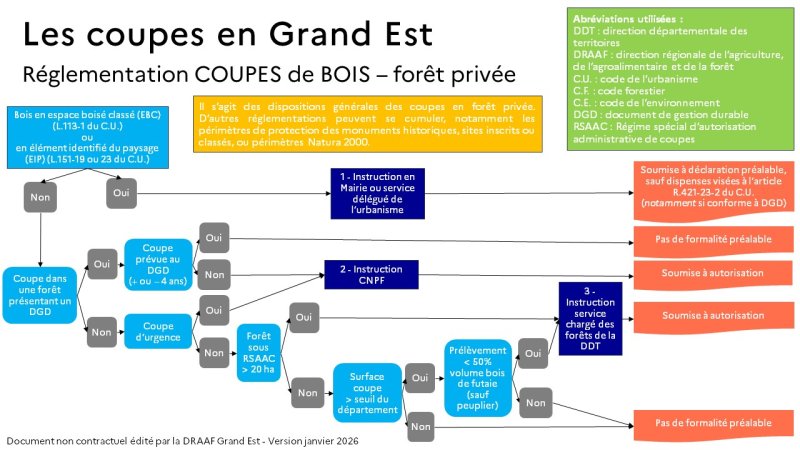 Les coupes de bois sont réglementées par le code forestier, mais peuvent également faire intervenir, selon les situations, le code de l’urbanisme, le code de l’environnement, ou encore le code général des impôts dans le cas d’engagements fiscaux. Elles peuvent ainsi être soumises à autorisation ou déclaration préalable, avec des seuils susceptibles de varier selon les départements.